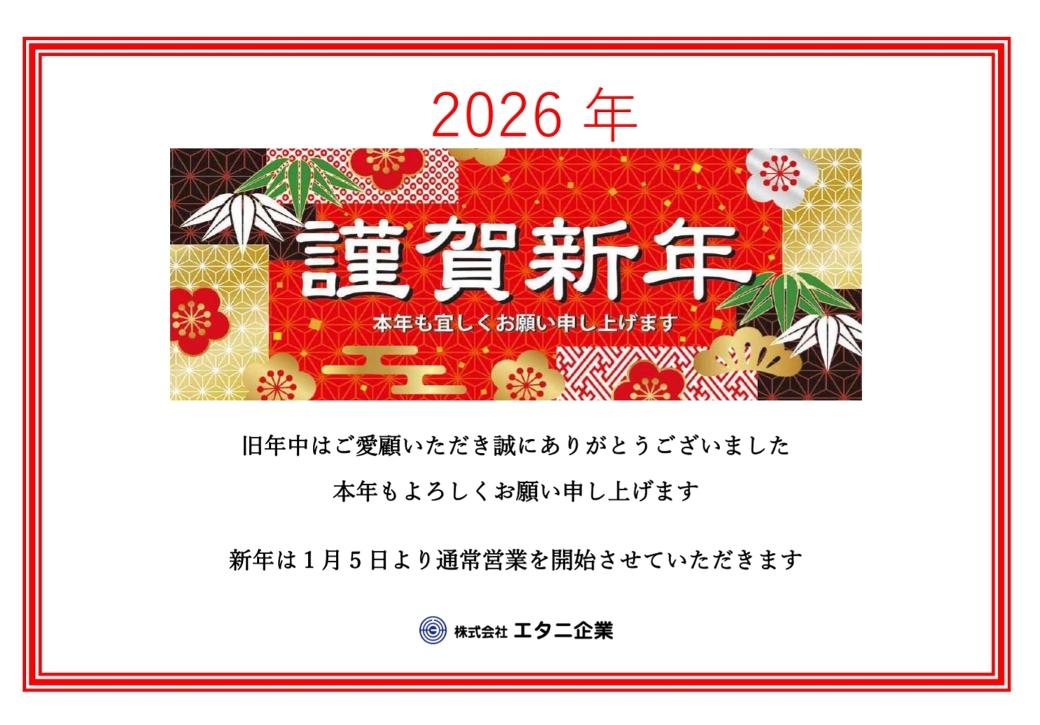 本年も社員一同より一層のサービス向上を目指し、誠心誠意努力させていただく所存でございます