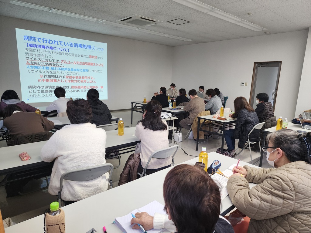 今までブログにはあげていたなかったと思いますが、いつも弊社の社内研修の様子をブログアップさせていただいておりますが、それは清掃に携わるスタッフに対して年2回前期・後期と分けて実施している研修で、今回はそれとはまた別に医療機関の清掃従事者に対する研修も前期・後期と年間2回行っております。